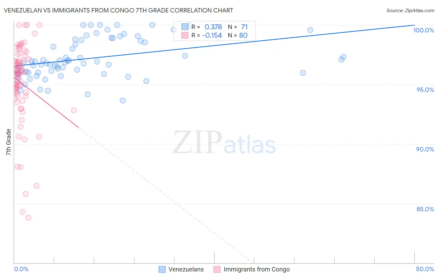 Venezuelan vs Immigrants from Congo 7th Grade Correlation Chart