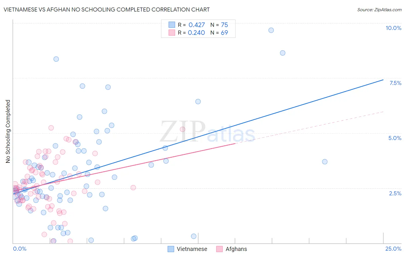 Vietnamese vs Afghan No Schooling Completed Correlation Chart
