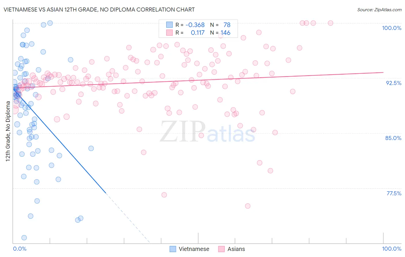Vietnamese vs Asian 12th Grade, No Diploma Correlation Chart