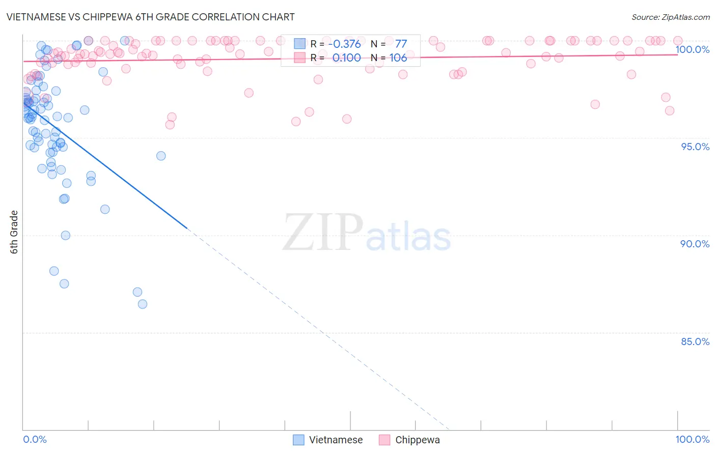 Vietnamese vs Chippewa 6th Grade Correlation Chart