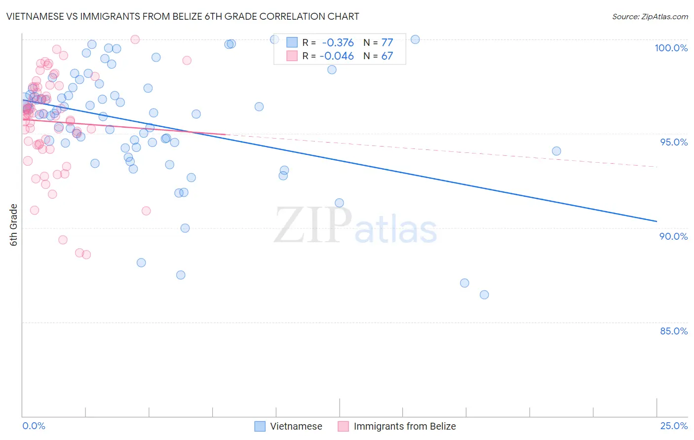 Vietnamese vs Immigrants from Belize 6th Grade Correlation Chart