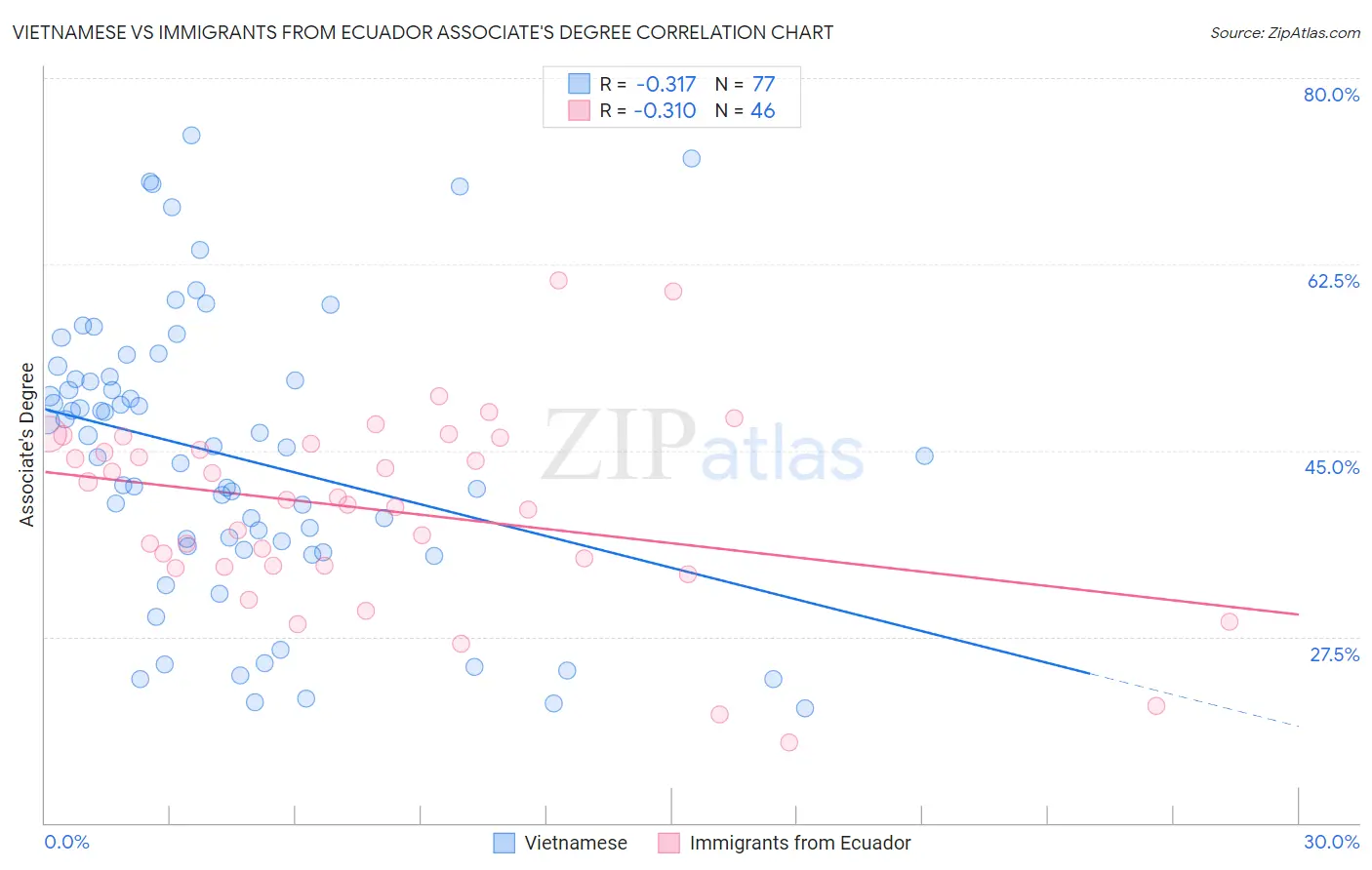 Vietnamese vs Immigrants from Ecuador Associate's Degree Correlation Chart