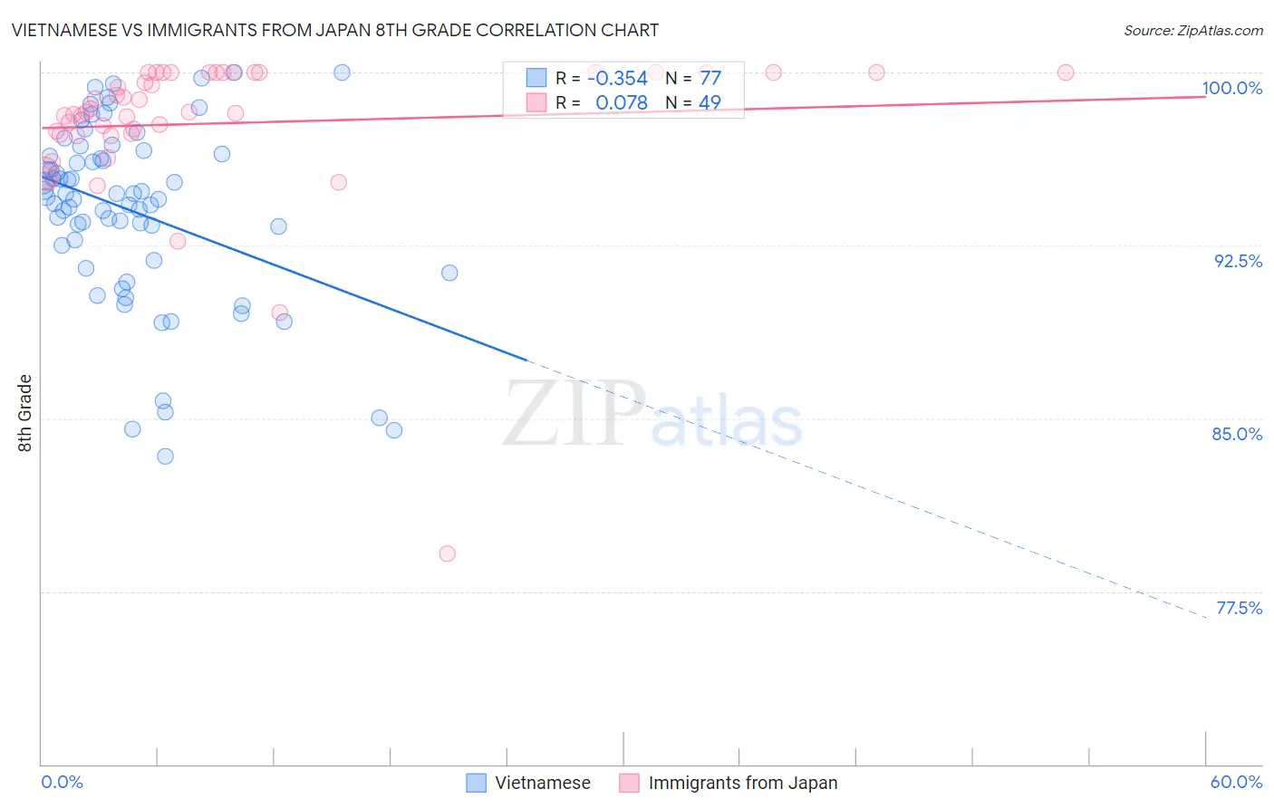 Vietnamese vs Immigrants from Japan 8th Grade Correlation Chart