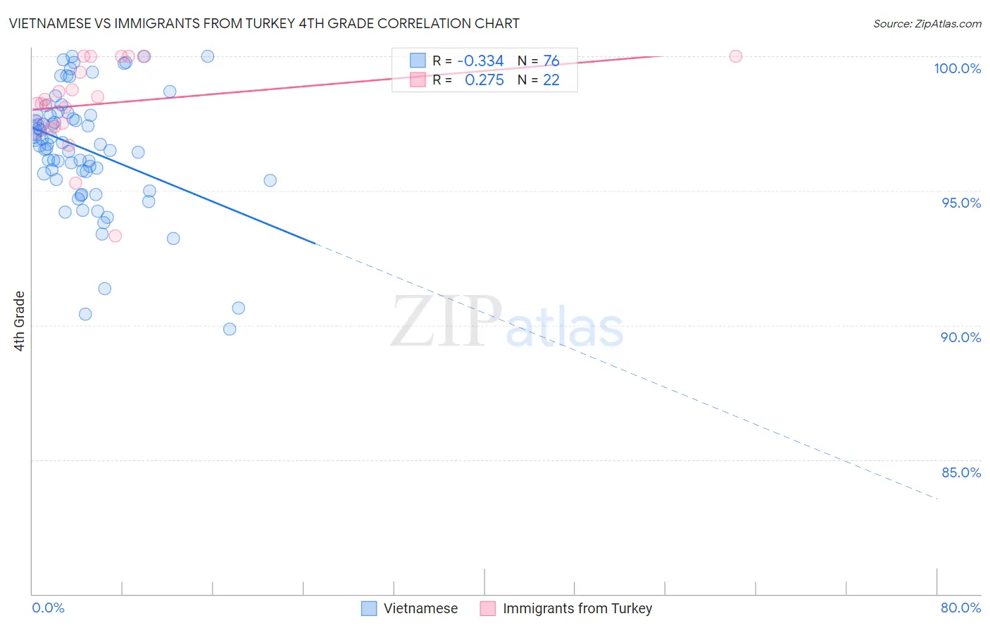 Vietnamese vs Immigrants from Turkey 4th Grade Correlation Chart