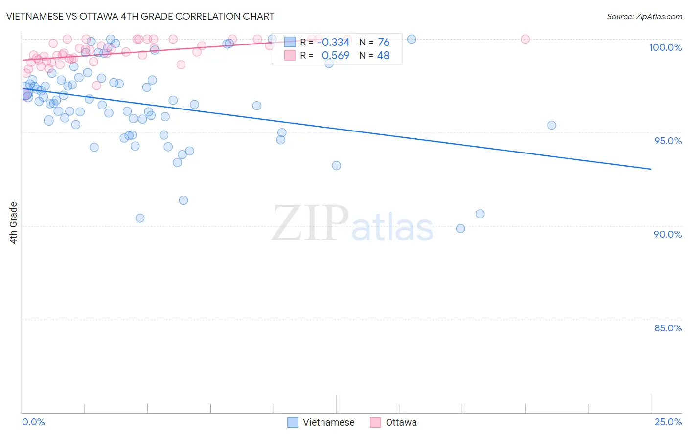 Vietnamese vs Ottawa 4th Grade Correlation Chart