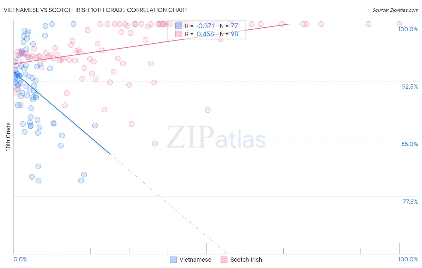 Vietnamese vs Scotch-Irish 10th Grade Correlation Chart