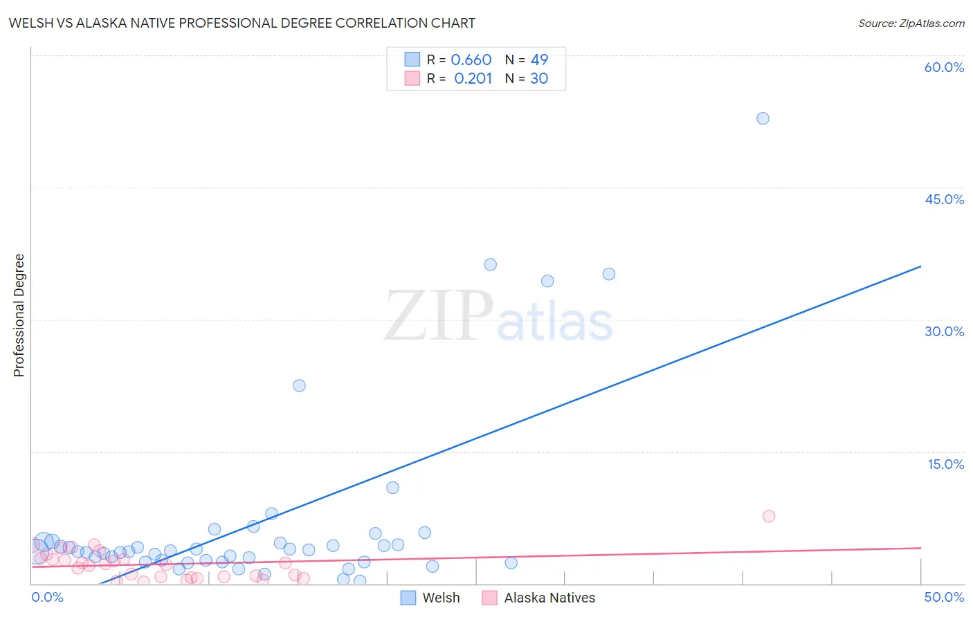 Welsh vs Alaska Native Professional Degree Correlation Chart