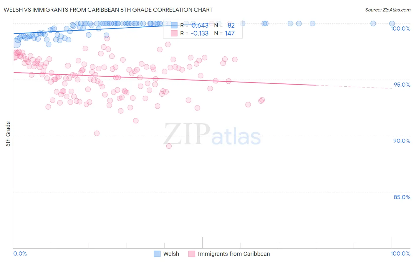 Welsh vs Immigrants from Caribbean 6th Grade Correlation Chart