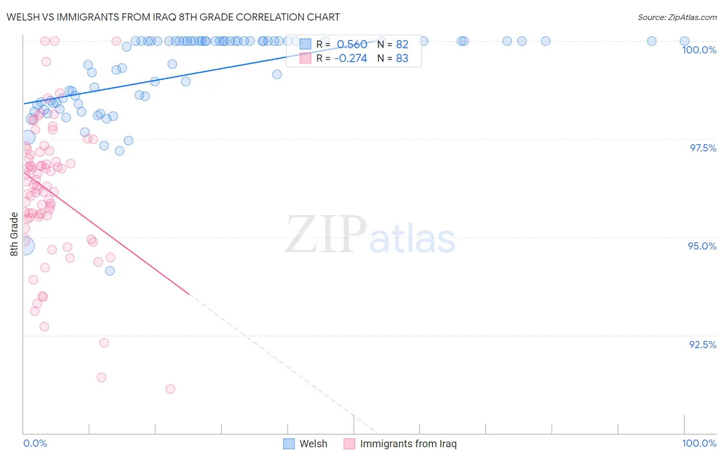 Welsh vs Immigrants from Iraq 8th Grade Correlation Chart