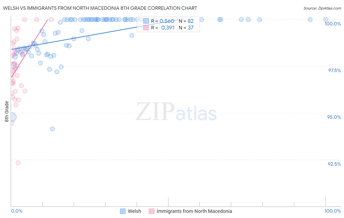 Welsh vs Immigrants from North Macedonia 8th Grade Correlation Chart