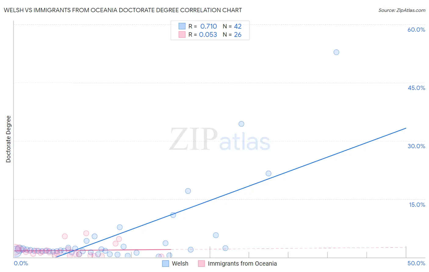 Welsh vs Immigrants from Oceania Doctorate Degree Correlation Chart