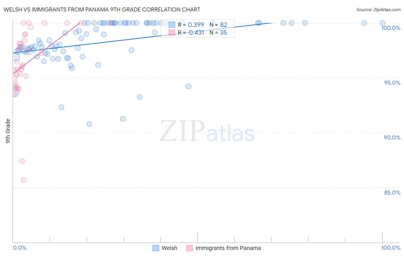 Welsh vs Immigrants from Panama 9th Grade Correlation Chart