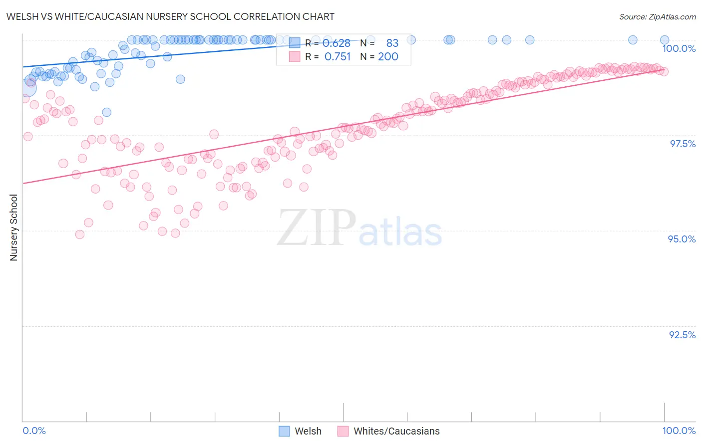 Welsh vs White/Caucasian Nursery School Correlation Chart
