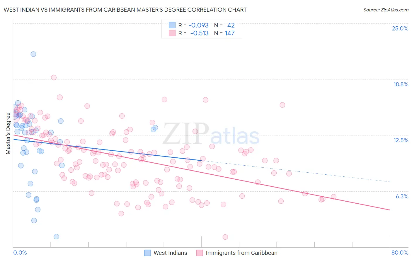 West Indian vs Immigrants from Caribbean Master's Degree Correlation Chart