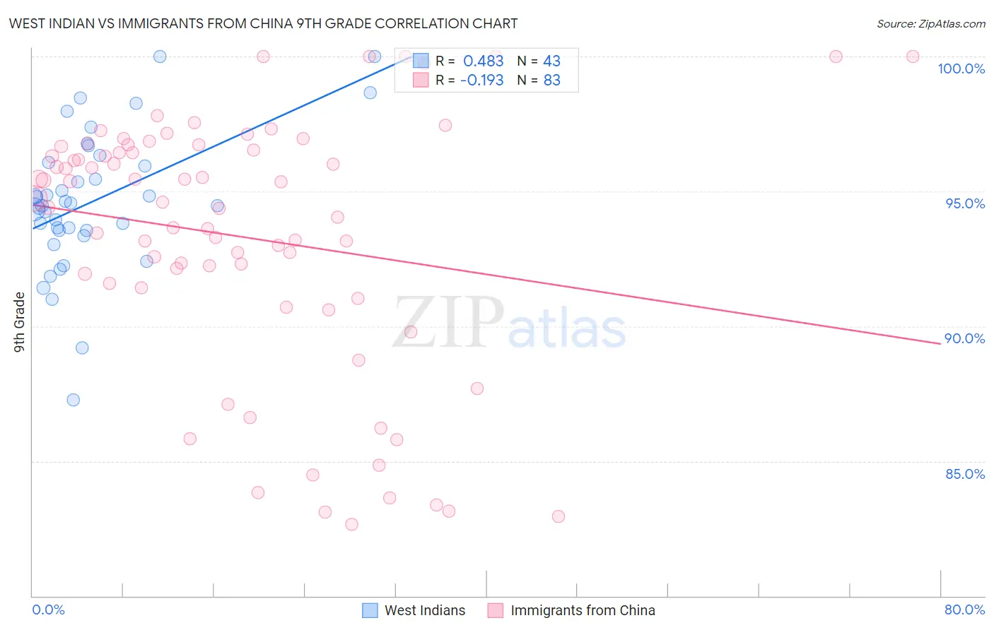 West Indian vs Immigrants from China 9th Grade Correlation Chart