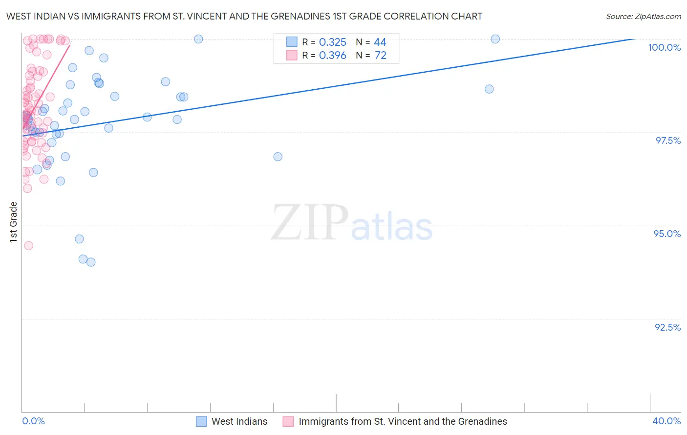 West Indian vs Immigrants from St. Vincent and the Grenadines 1st Grade Correlation Chart
