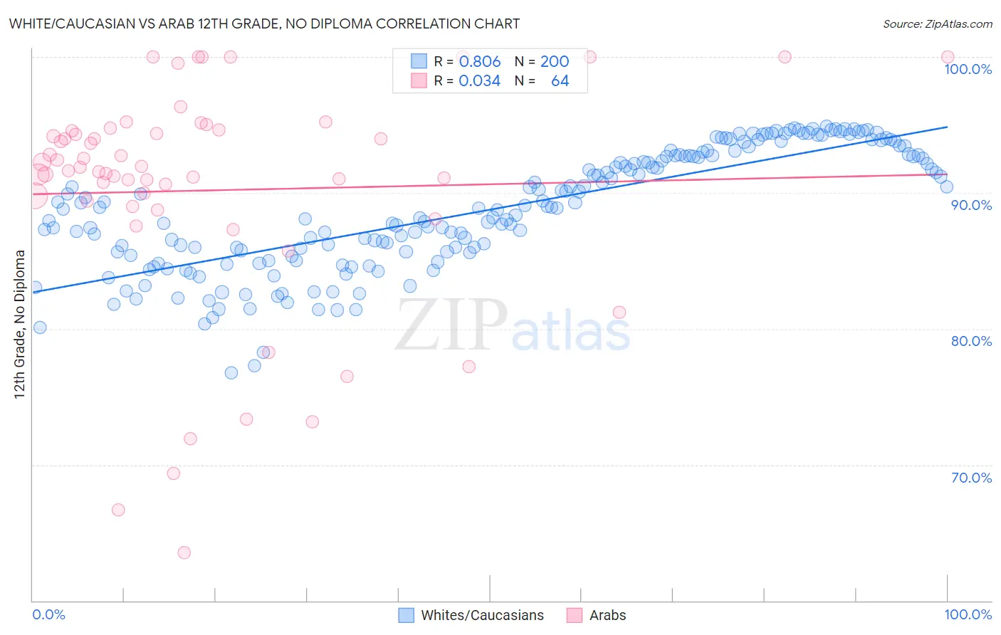 White/Caucasian vs Arab 12th Grade, No Diploma Correlation Chart