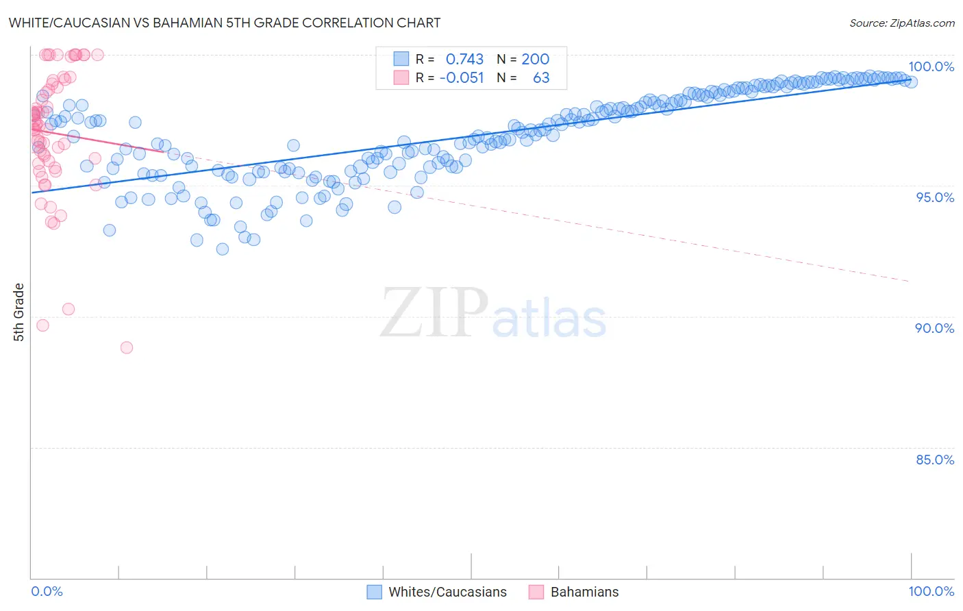 White/Caucasian vs Bahamian 5th Grade Correlation Chart