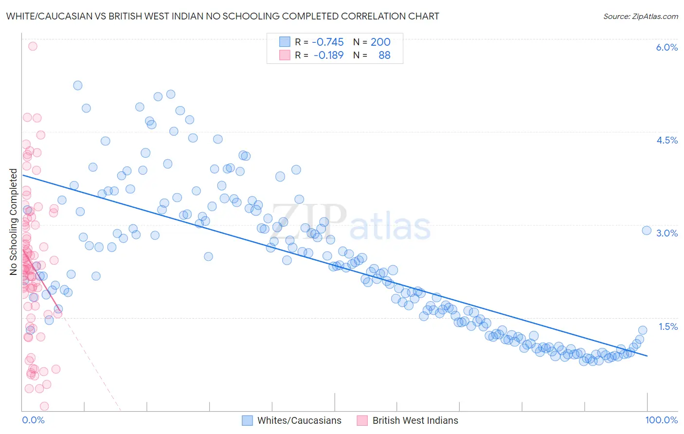 White/Caucasian vs British West Indian No Schooling Completed Correlation Chart