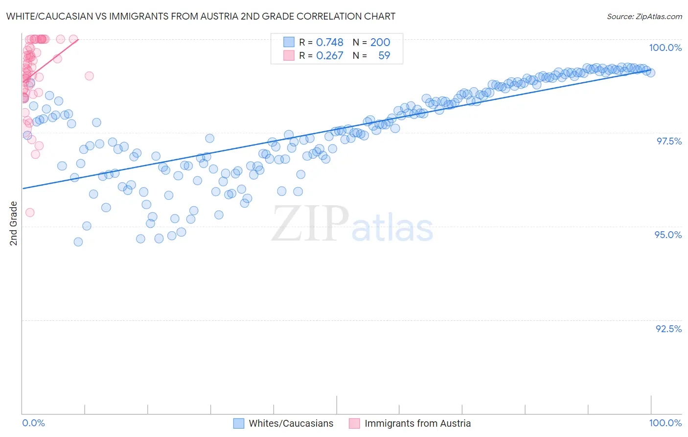 White/Caucasian vs Immigrants from Austria 2nd Grade Correlation Chart