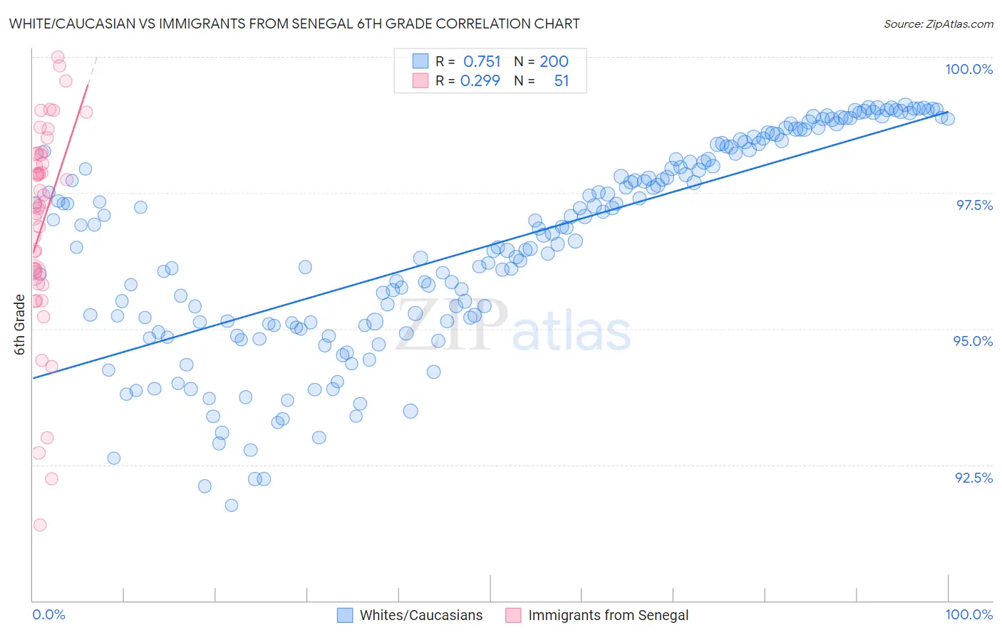 White/Caucasian vs Immigrants from Senegal 6th Grade Correlation Chart