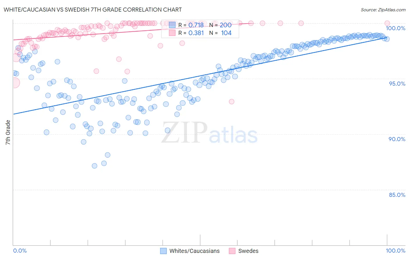 White/Caucasian vs Swedish 7th Grade Correlation Chart