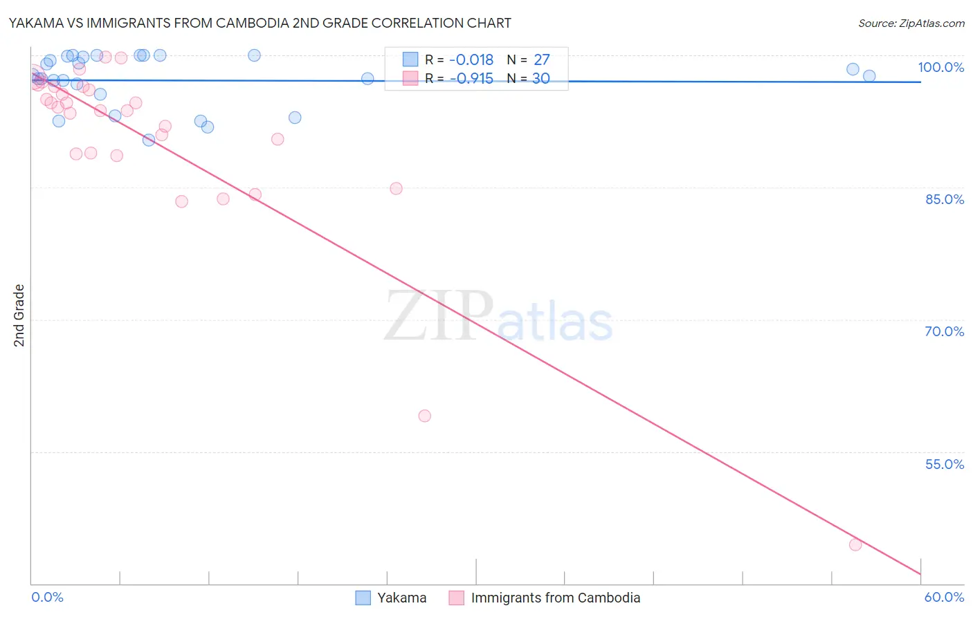 Yakama vs Immigrants from Cambodia 2nd Grade Correlation Chart