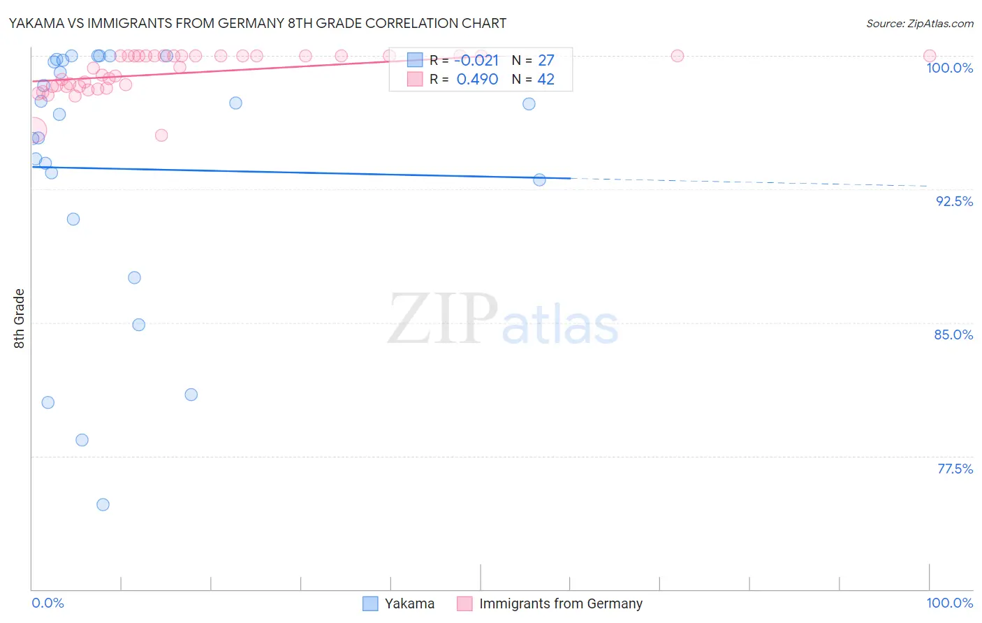 Yakama vs Immigrants from Germany 8th Grade Correlation Chart