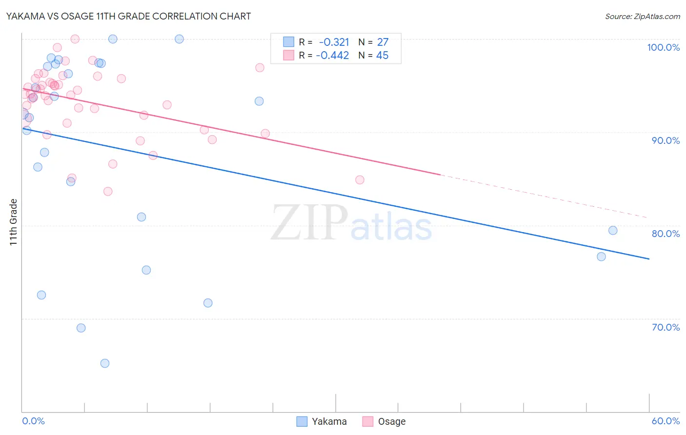 Yakama vs Osage 11th Grade Correlation Chart