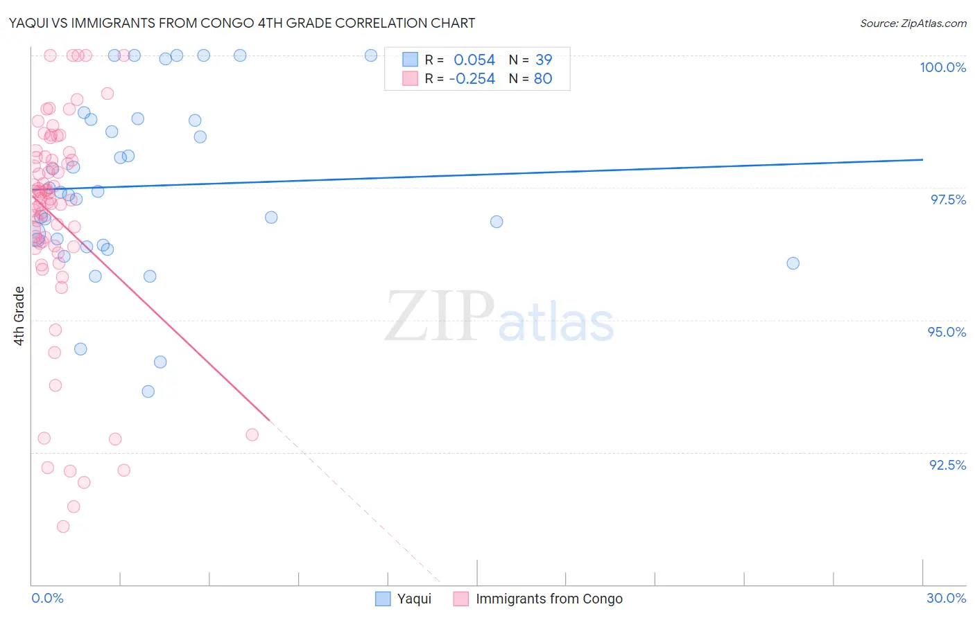Yaqui vs Immigrants from Congo 4th Grade Correlation Chart
