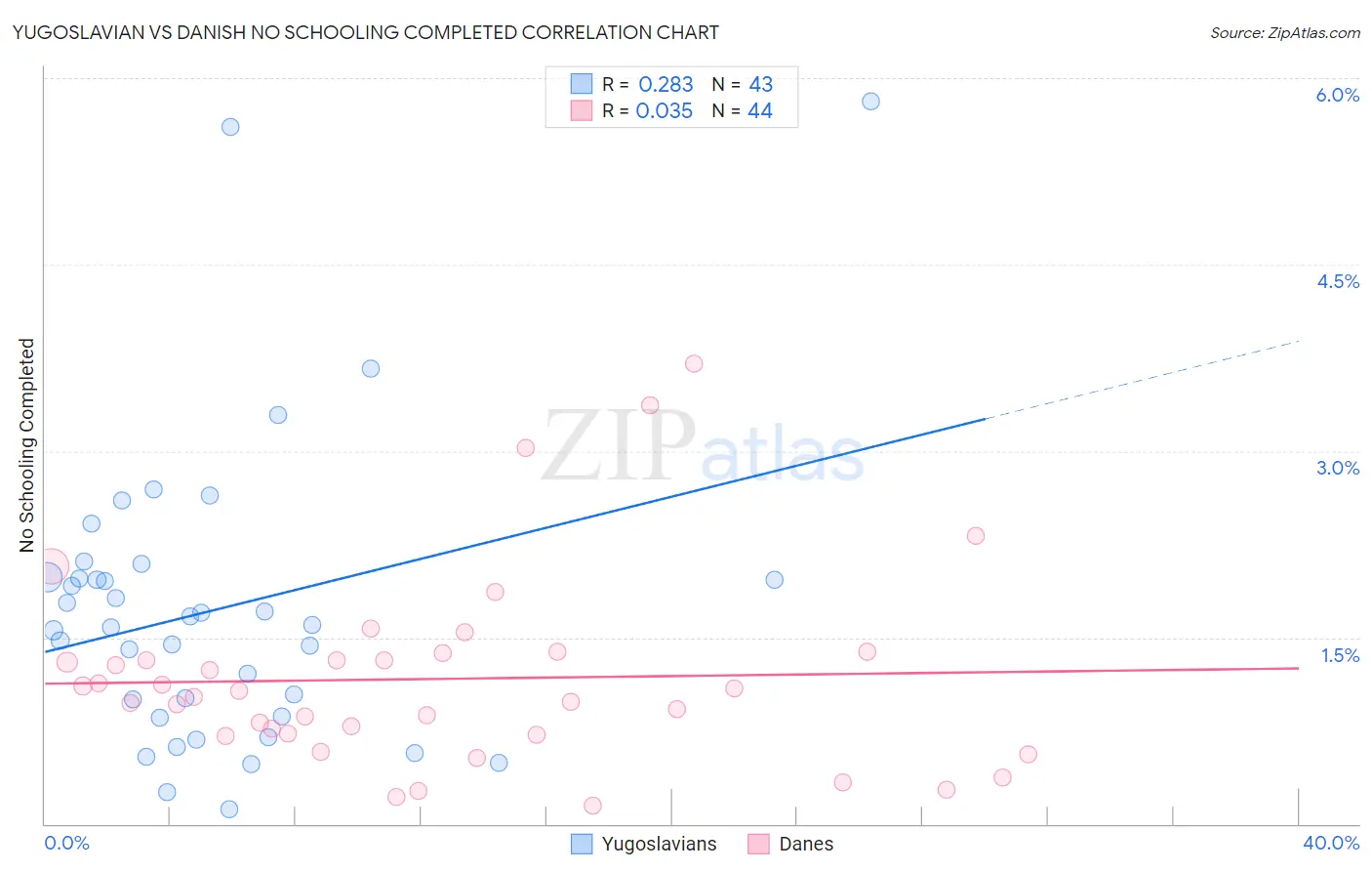 Yugoslavian vs Danish No Schooling Completed Correlation Chart