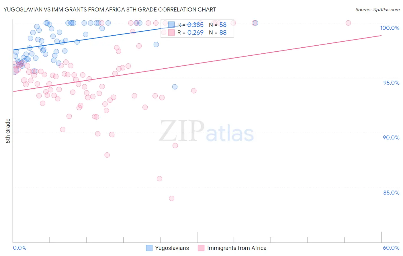 Yugoslavian vs Immigrants from Africa 8th Grade Correlation Chart