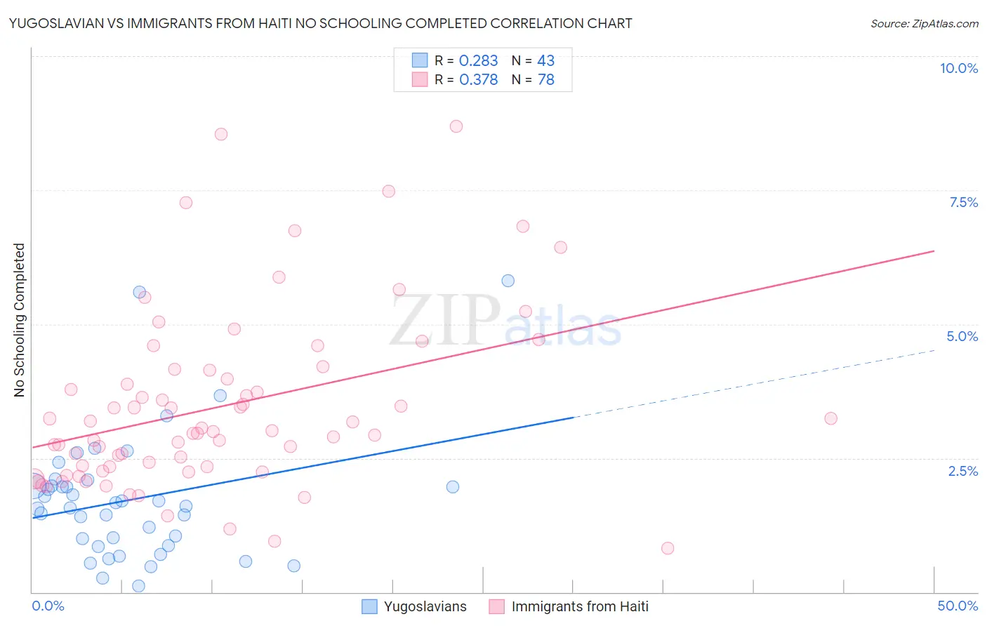 Yugoslavian vs Immigrants from Haiti No Schooling Completed Correlation Chart