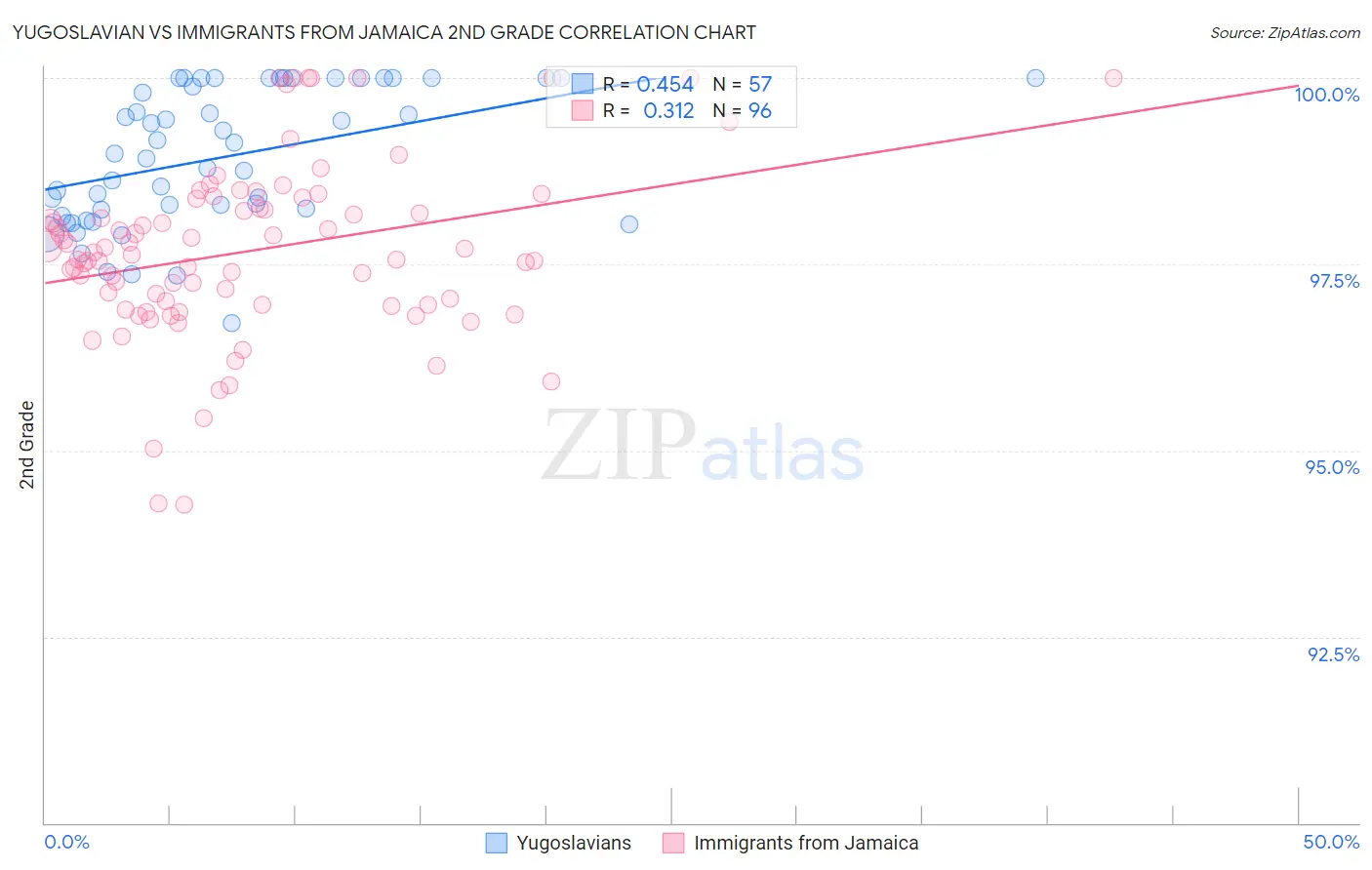 Yugoslavian vs Immigrants from Jamaica 2nd Grade Correlation Chart