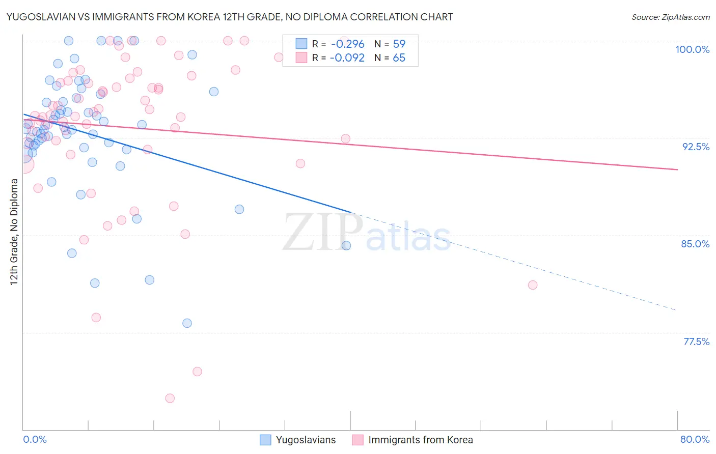 Yugoslavian vs Immigrants from Korea 12th Grade, No Diploma Correlation Chart