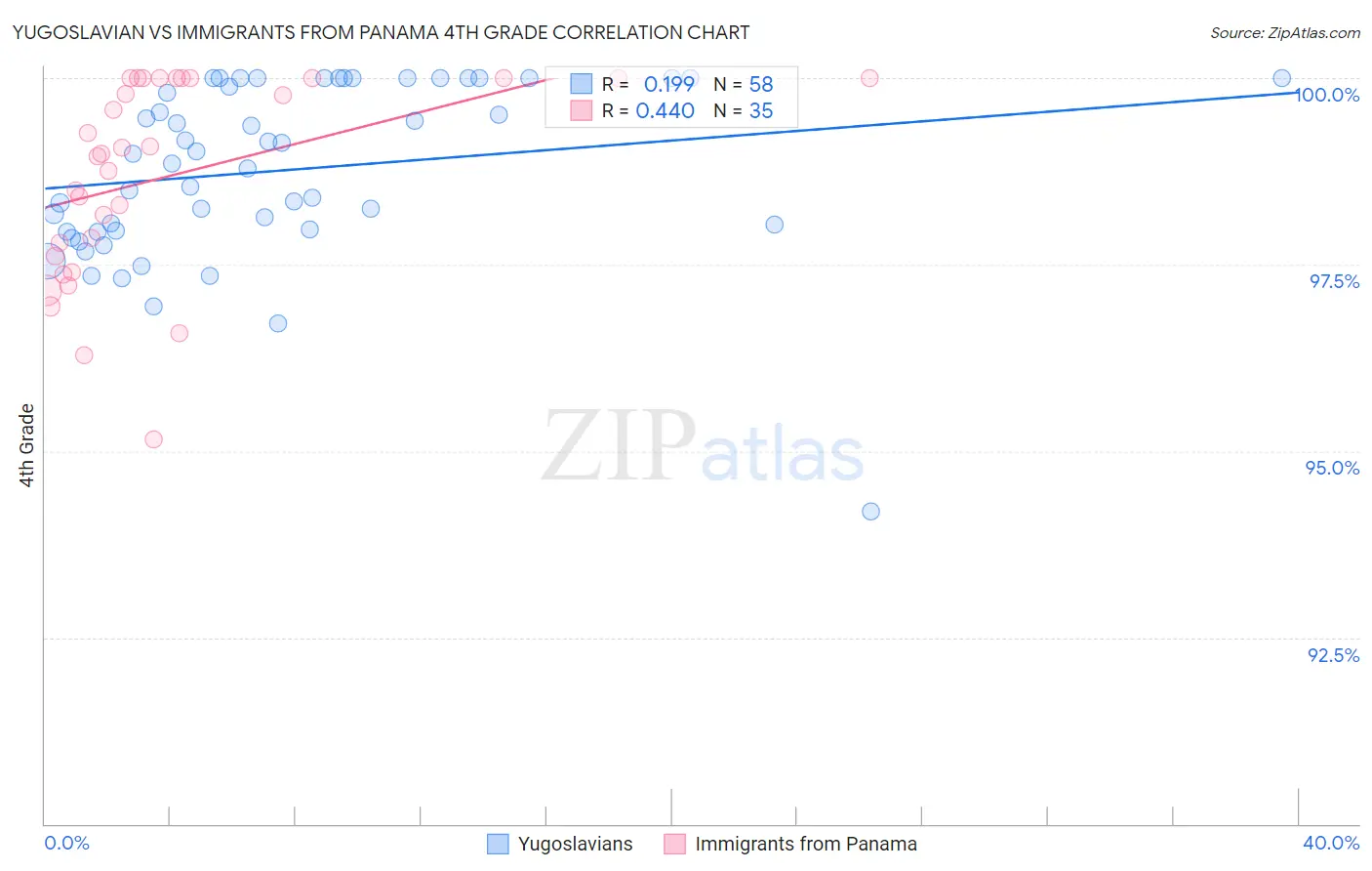 Yugoslavian vs Immigrants from Panama 4th Grade Correlation Chart