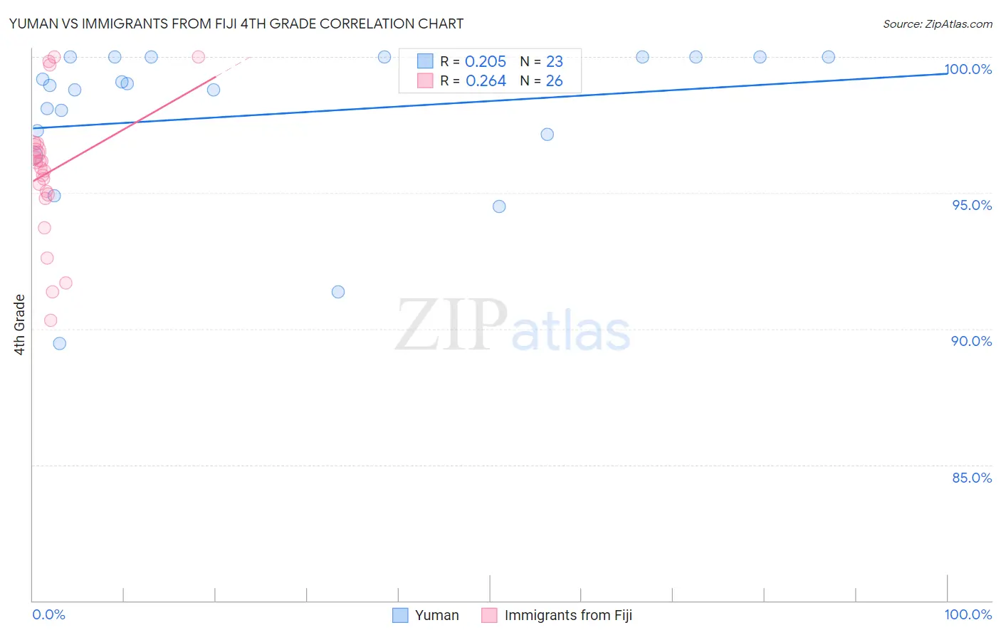 Yuman vs Immigrants from Fiji 4th Grade Correlation Chart