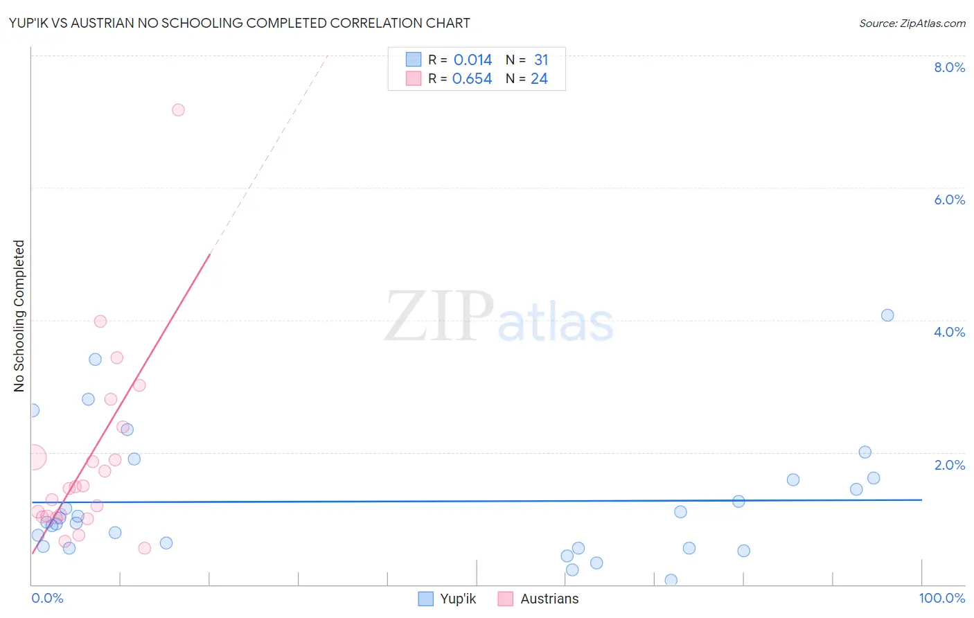 Yup'ik vs Austrian No Schooling Completed Correlation Chart