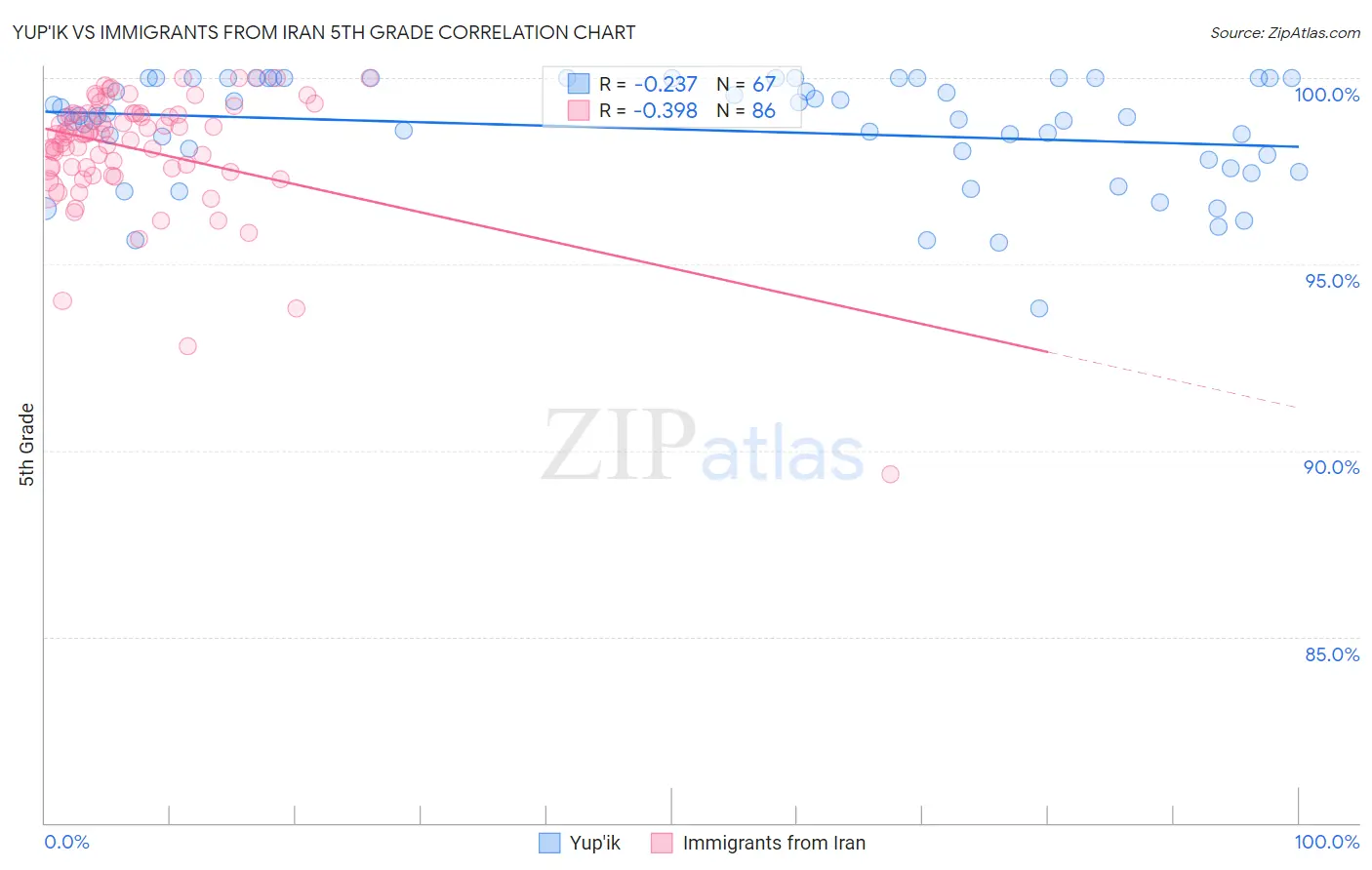 Yup'ik vs Immigrants from Iran 5th Grade Correlation Chart