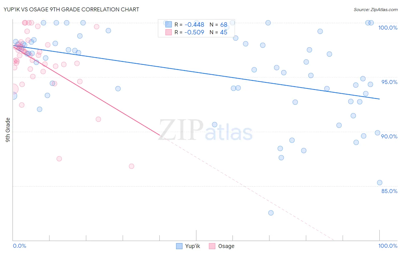 Yup'ik vs Osage 9th Grade Correlation Chart