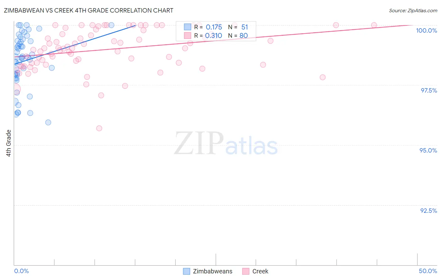 Zimbabwean vs Creek 4th Grade Correlation Chart
