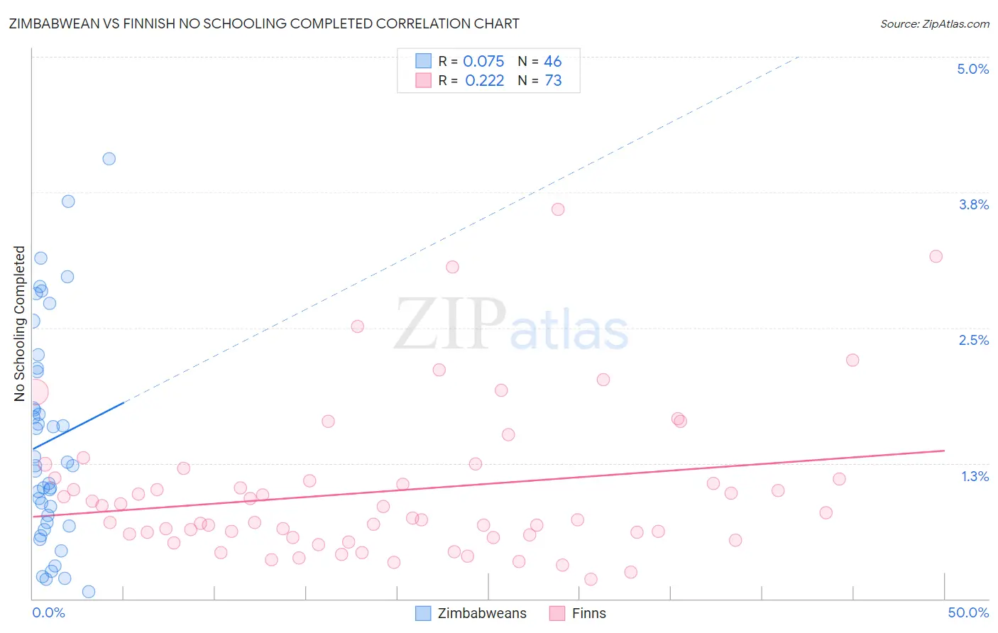 Zimbabwean vs Finnish No Schooling Completed Correlation Chart