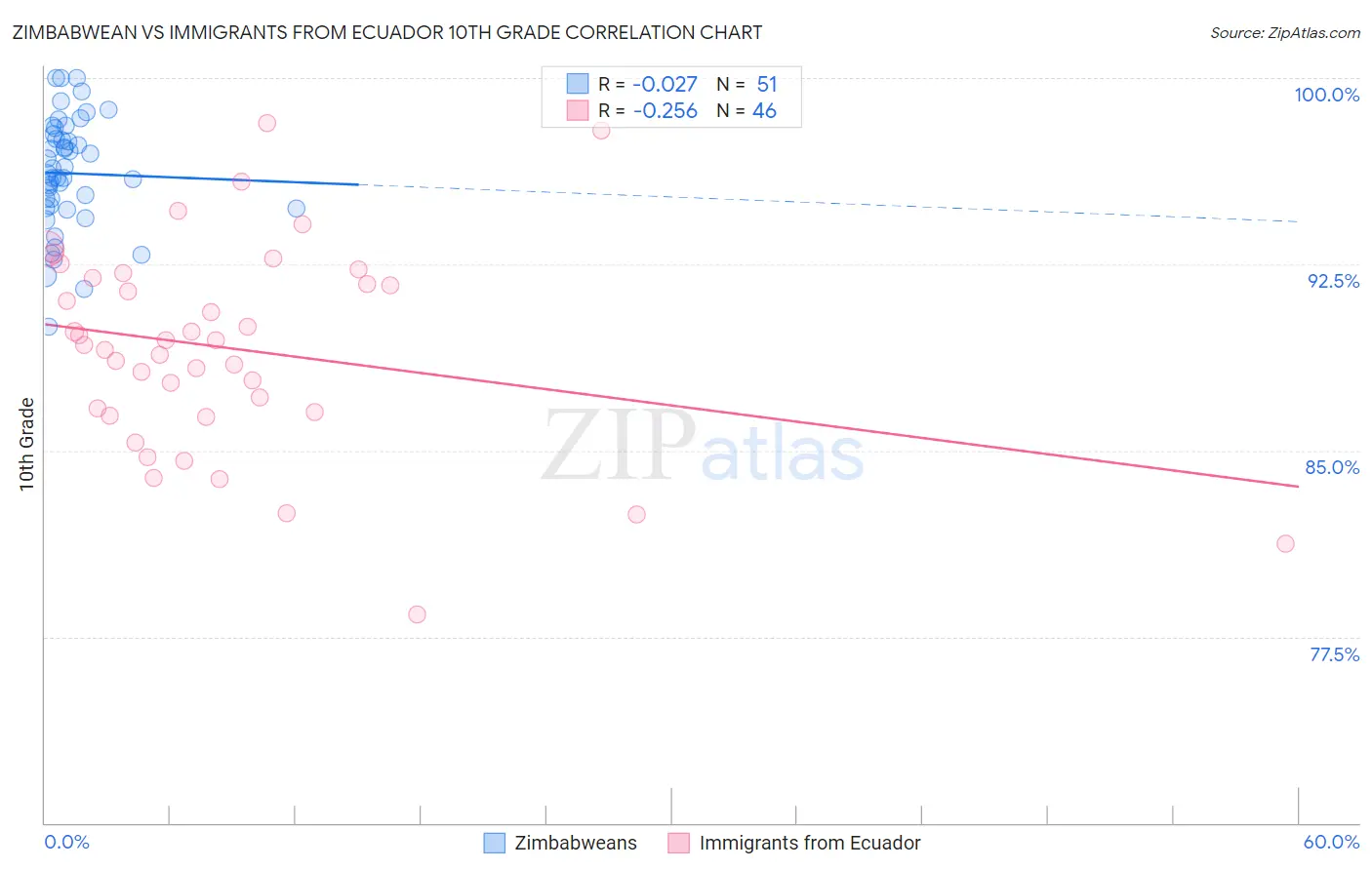 Zimbabwean vs Immigrants from Ecuador 10th Grade Correlation Chart