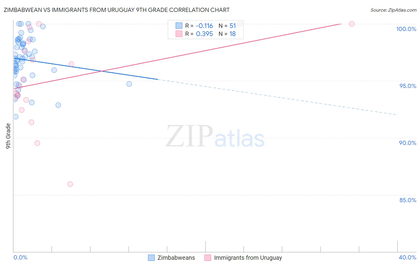 Zimbabwean vs Immigrants from Uruguay 9th Grade Correlation Chart