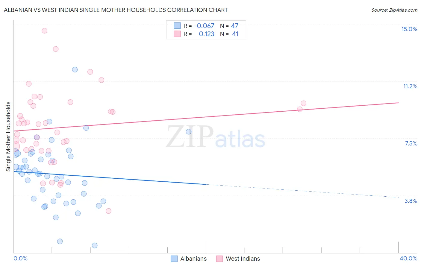 Albanian vs West Indian Single Mother Households Correlation Chart