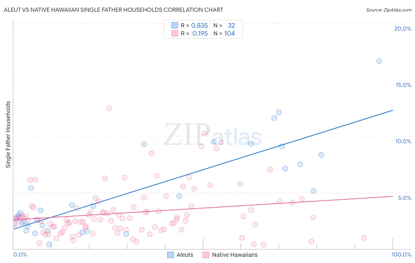 Aleut vs Native Hawaiian Single Father Households Correlation Chart