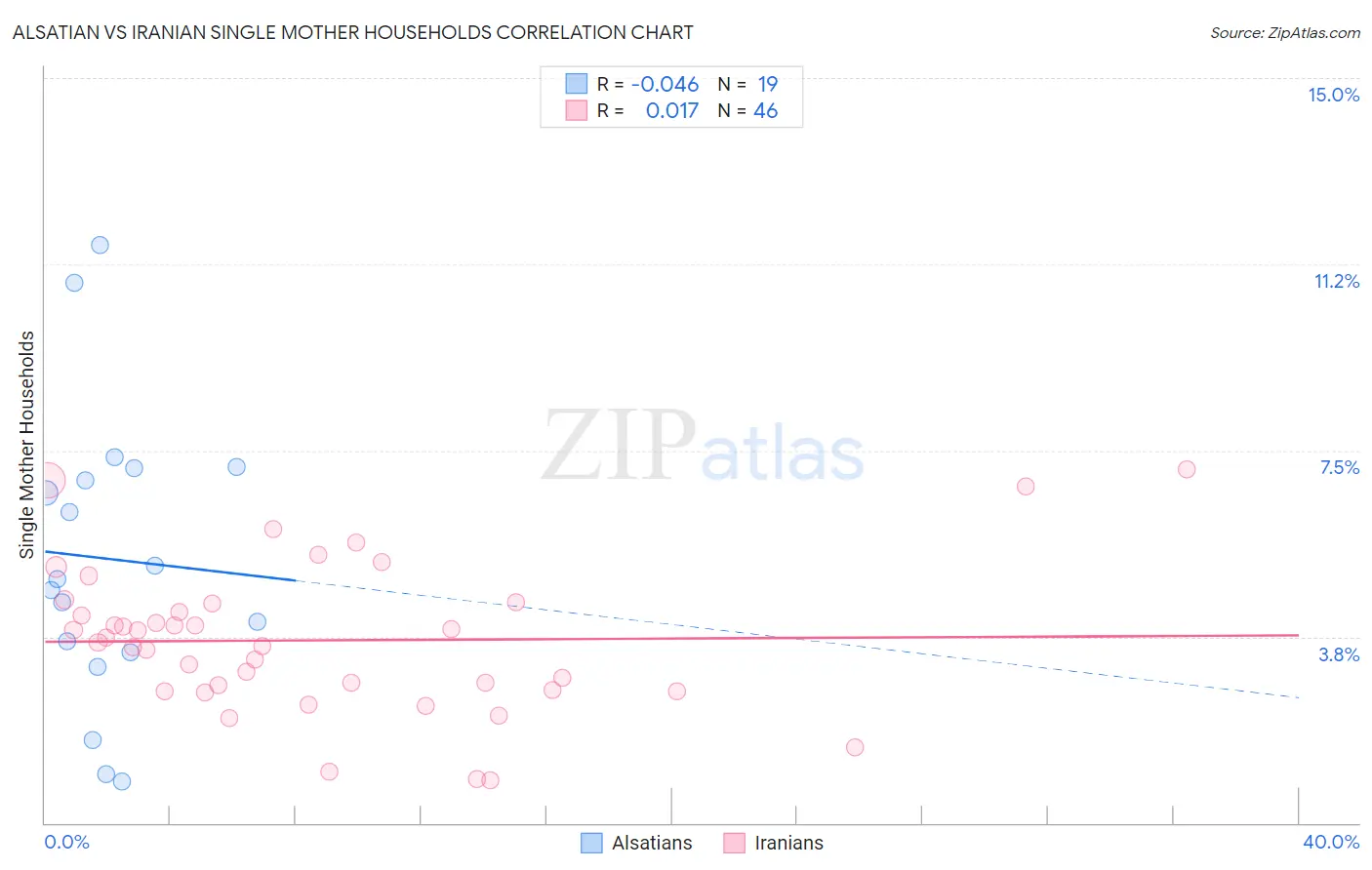 Alsatian vs Iranian Single Mother Households Correlation Chart