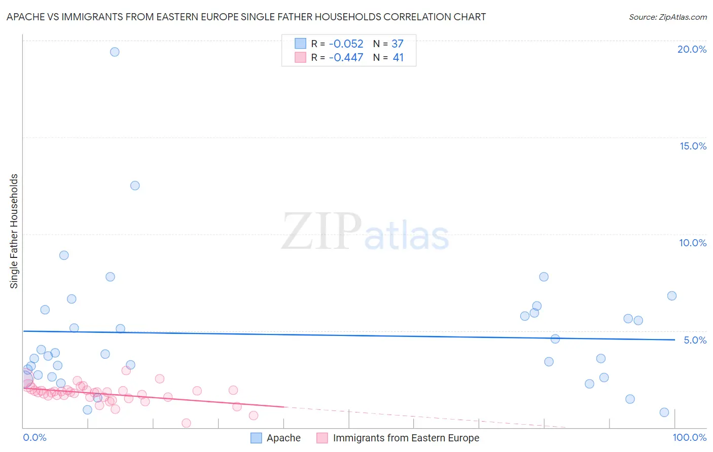 Apache vs Immigrants from Eastern Europe Single Father Households Correlation Chart