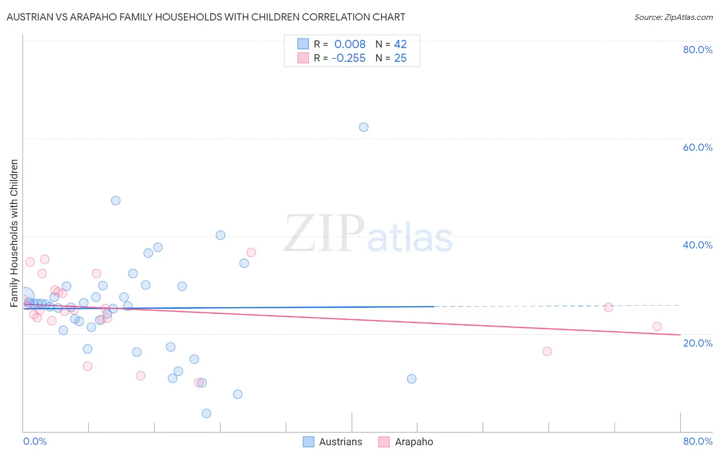 Austrian vs Arapaho Family Households with Children Correlation Chart