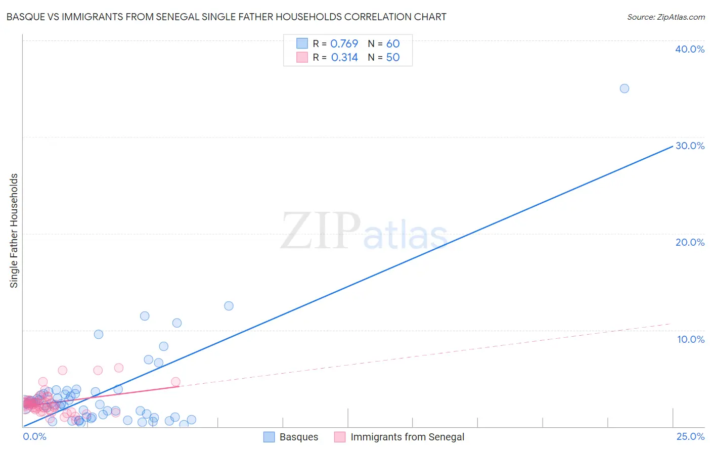 Basque vs Immigrants from Senegal Single Father Households Correlation Chart